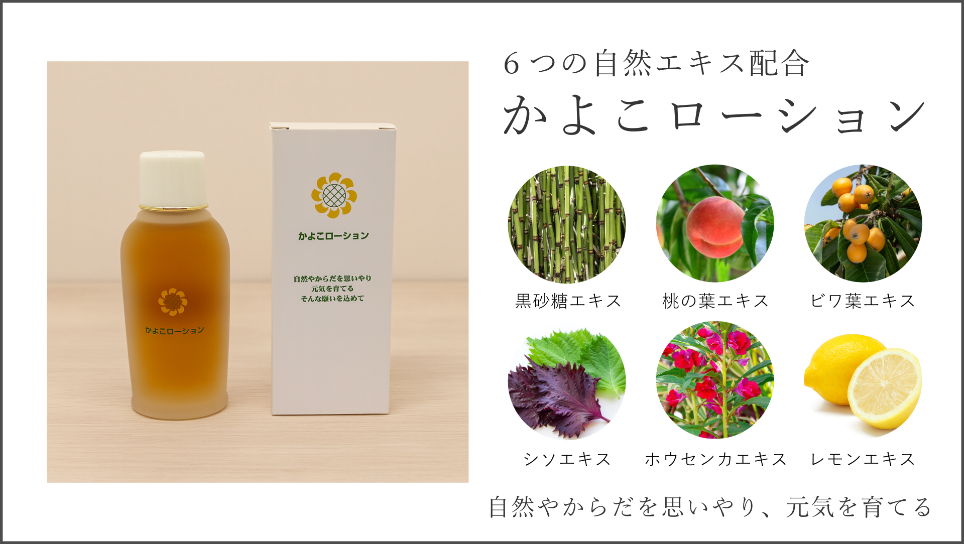 このかよこローションを作ったのは、肌が荒れて寒風にも辛い方々の保湿と肌艶を蘇らせたいと思い取り組みました。